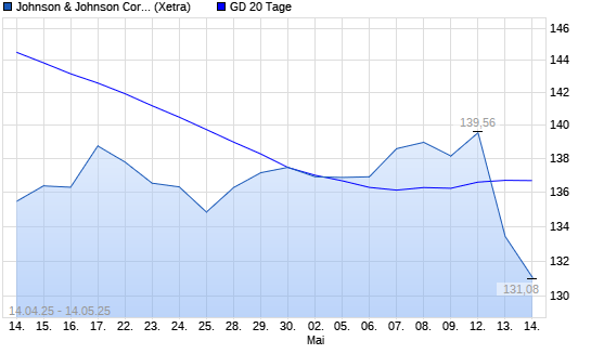 Mit dem Rücksetzer auf 133,86 EUR hat die Johnson & Johnson-Aktie am 13.05.2025 die 20-Tage-Linie nach unten gekreuzt.