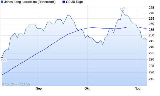 Mit dem Rücksetzer auf 246,00 EUR hat die Jones Lang LaSalle-Aktie am 06.11.2025 die 38-Tage-Linie nach unten gekreuzt.