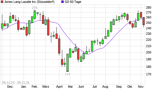Mit dem Rücksetzer auf 258,00 EUR hat die Jones Lang LaSalle-Aktie am 04.11.2025 die 50-Tage-Linie nach unten gekreuzt.