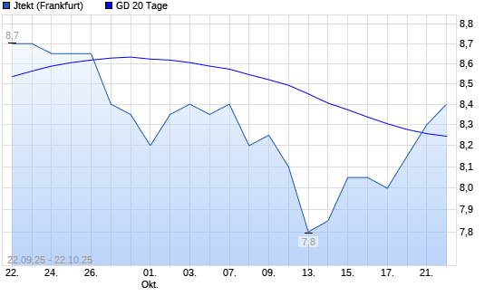 Mit dem Anstieg auf 8,30 EUR hat die Jtekt-Aktie am 21.10.2025 die 20-Tage-Linie nach oben gekreuzt.