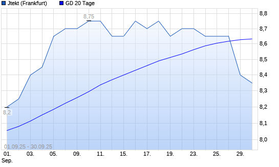 Mit dem Rücksetzer auf 8,40 EUR hat die Jtekt-Aktie am 29.09.2025 die 20-Tage-Linie nach unten gekreuzt.