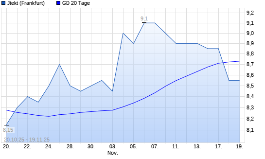 Mit dem Rücksetzer auf 8,55 EUR hat die Jtekt-Aktie am 18.11.2025 die 20-Tage-Linie nach unten gekreuzt.