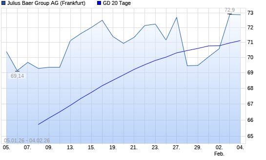 Mit dem Anstieg auf 72,90 EUR hat die Julius Baer Group-Aktie am 03.02.2026 die 20-Tage-Linie nach oben gekreuzt.