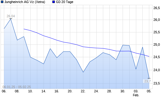 Mit dem Anstieg auf 25,02 EUR hat die Jungheinrich Vz-Aktie am 04.02.2025 die 20-Tage-Linie nach oben gekreuzt.