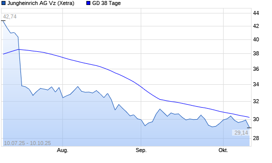 Mit dem Anstieg auf 30,48 EUR hat die Jungheinrich Vz-Aktie am 09.10.2025 die 38-Tage-Linie nach oben gekreuzt.