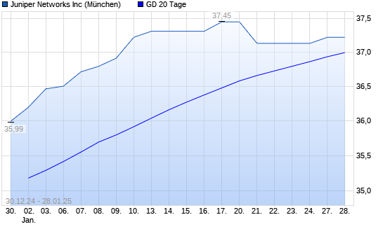 Mit dem Rücksetzer auf 36,92 EUR hat die Juniper Networks-Aktie am 27.01.2025 die 20-Tage-Linie nach unten gekreuzt.