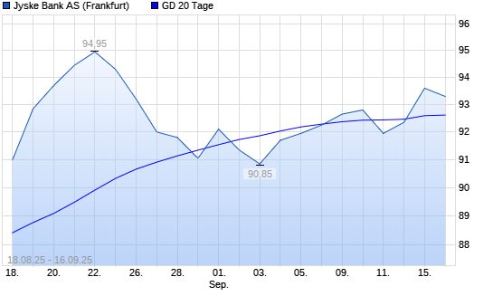 Mit dem Anstieg auf 93,60 EUR hat die Jyske Bank-Aktie am 15.09.2025 die 20-Tage-Linie nach oben gekreuzt.