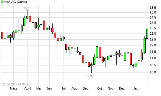 Mit dem Anstieg auf 13,49 EUR hat die K+S-Aktie (ISIN DE000KSAG888) am 30.01.2025 ein neues 6-Monats-Hoch erreicht und damit den Kurs vom 29.01.2025 eingestellt.