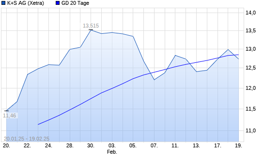 Mit dem Anstieg auf 13,03 EUR hat die K+S-Aktie am 18.02.2025 die 20-Tage-Linie nach oben gekreuzt.