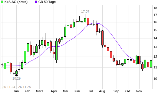 Mit dem Anstieg auf 11,42 EUR hat die K+S-Aktie am 25.11.2025 die 50-Tage-Linie nach oben gekreuzt.
