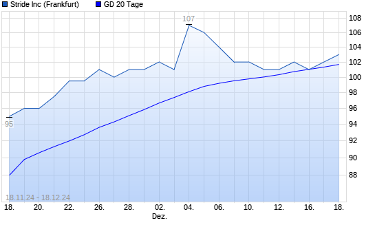 Mit dem Anstieg auf 102,00 EUR hat die K12-Aktie am 17.12.2024 die 20-Tage-Linie nach oben gekreuzt.