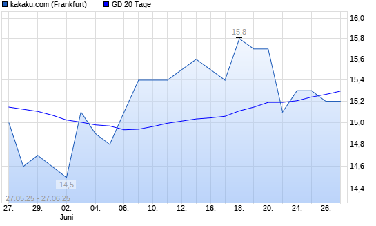 Mit dem Rücksetzer auf 15,50 EUR hat die KAKAKU.COM-Aktie am 26.06.2025 die 20-Tage-Linie nach unten gekreuzt.