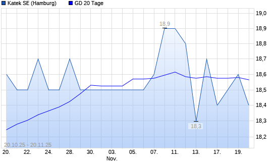Mit dem Anstieg auf 18,60 EUR hat die KATEK SE O.N.-Aktie am 19.11.2025 die 20-Tage-Linie nach oben gekreuzt.