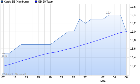 Mit dem Rücksetzer auf 19,00 EUR hat die KATEK SE O.N.-Aktie am 06.12.2024 die 20-Tage-Linie nach unten gekreuzt.