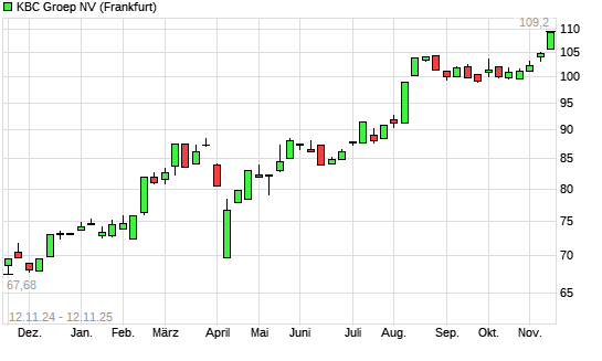 Mit dem Anstieg auf 107,60 EUR hat die KBC Groep-Aktie (ISIN BE0003565737) am 11.11.2025 ein neues All-Time-High erreicht und damit den Kurs vom 10.11.2025 eingestellt.