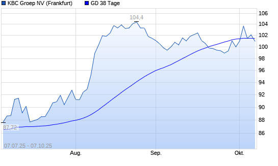Mit dem Anstieg auf 102,10 EUR hat die KBC Groep-Aktie am 06.10.2025 die 38-Tage-Linie nach oben gekreuzt.