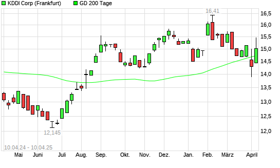 Mit dem Anstieg auf 14,86 EUR hat die KDDI-Aktie am 09.04.2025 die 200-Tage-Linie nach oben gekreuzt.