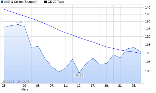 Mit dem Anstieg auf 113,46 EUR hat die KKR & Co.-Aktie am 25.03.2025 die 20-Tage-Linie nach oben gekreuzt.