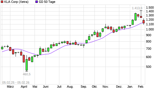 Mit dem Rücksetzer auf 1.107,60 EUR hat die KLA Corp.-Aktie am 04.02.2026 die 50-Tage-Linie nach unten gekreuzt.