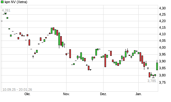 Mit dem Rücksetzer auf 3,75 EUR hat die KPN-Aktie (ISIN NL0000009082) am 19.01.2026 ein neues 6-Monats-Tief erreicht und damit den Kurs vom 14.01.2026 eingestellt.Die KPN-Aktie befindet ...weiterlesen