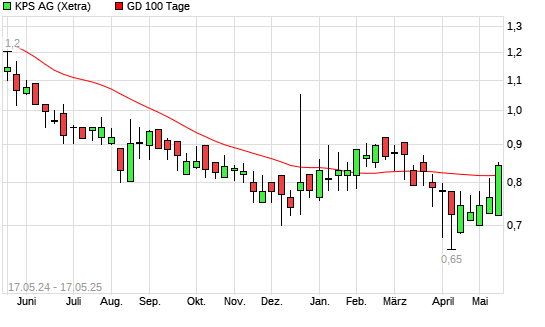 Mit dem Anstieg auf 0,78 EUR hat die KPS-Aktie am 16.05.2025 die 100-Tage-Linie nach oben gekreuzt.