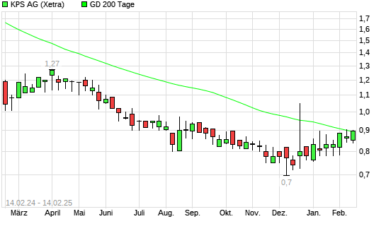 Mit dem Anstieg auf 0,85 EUR hat die KPS-Aktie am 13.02.2025 die 200-Tage-Linie nach oben gekreuzt.