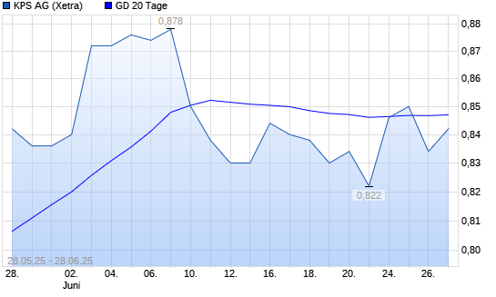 Mit dem Rücksetzer auf 0,80 EUR hat die KPS-Aktie am 27.06.2025 die 20-Tage-Linie nach unten gekreuzt.