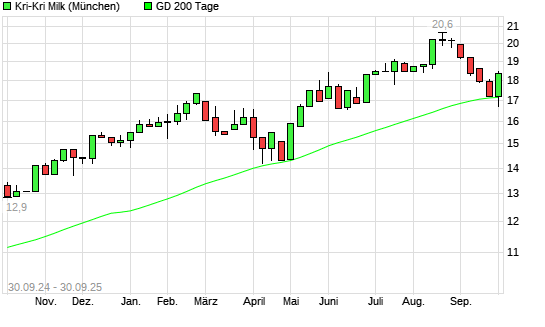 Mit dem Anstieg auf 17,20 EUR hat die KRI-KRI MILK NAM.-Aktie am 29.09.2025 die 200-Tage-Linie nach oben gekreuzt.
