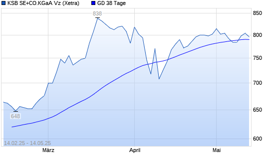 Mit dem Anstieg auf 790,00 EUR hat die KSB Vz-Aktie am 13.05.2025 die 38-Tage-Linie nach oben gekreuzt.