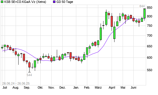 Mit dem Anstieg auf 828,00 EUR hat die KSB Vz-Aktie am 25.06.2025 die 50-Tage-Linie nach oben gekreuzt.