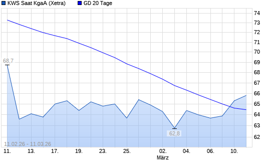 Mit dem Anstieg auf 65,20 EUR hat die KWS Saat-Aktie am 10.03.2026 die 20-Tage-Linie nach oben gekreuzt.