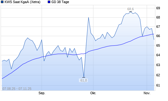 Mit dem Rücksetzer auf 65,70 EUR hat die KWS Saat-Aktie am 06.11.2025 die 38-Tage-Linie nach unten gekreuzt.