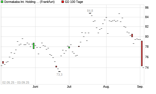 Mit dem Rücksetzer auf 743,00 EUR hat die Kaba Holding AG-Aktie am 02.09.2025 die 100-Tage-Linie nach unten gekreuzt.