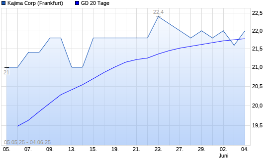 Mit dem Rücksetzer auf 21,60 EUR hat die Kajima-Aktie am 03.06.2025 die 20-Tage-Linie nach unten gekreuzt.
