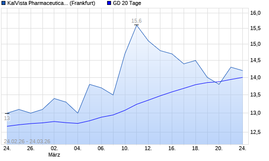 Mit dem Anstieg auf 14,30 EUR hat die KalVista Pharmaceuticals-Aktie am 23.03.2026 die 20-Tage-Linie nach oben gekreuzt.