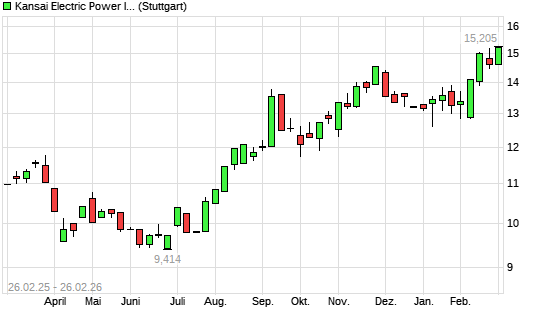 Mit dem Anstieg auf 15,19 EUR hat die Kansai Electric-Aktie (ISIN JP3228600007) am 25.02.2026 ein neues 12-Monats-Hoch erreicht und damit den Kurs vom 18.02.2026 eingestellt.
