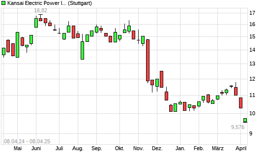 Mit dem Rücksetzer auf 9,40 EUR hat die Kansai Electric-Aktie (ISIN JP3228600007) am 07.04.2025 ein neues 12-Monats-Tief erreicht und damit den Kurs vom 20.12.2024 eingestellt.