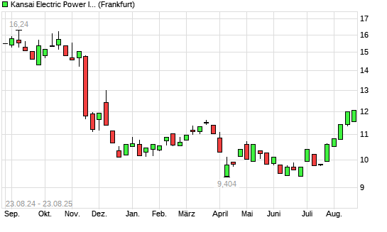 Mit dem Anstieg auf 12,04 EUR hat die Kansai Electric-Aktie (ISIN JP3228600007) am 22.08.2025 ein neues 6-Monats-Hoch erreicht und damit den Kurs vom 15.08.2025 eingestellt.