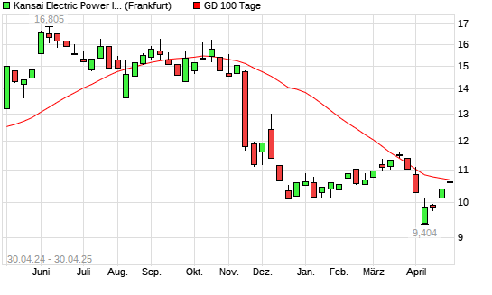 Mit dem Anstieg auf 10,72 EUR hat die Kansai Electric-Aktie am 29.04.2025 die 100-Tage-Linie nach oben gekreuzt.
