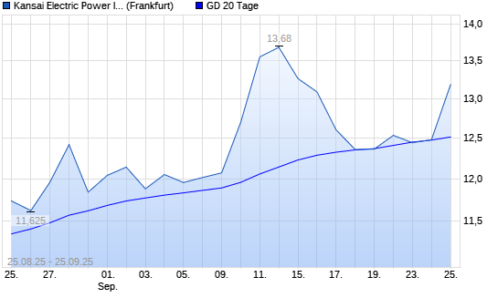 Mit dem Anstieg auf 12,48 EUR hat die Kansai Electric-Aktie am 24.09.2025 die 20-Tage-Linie nach oben gekreuzt.