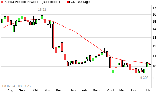 Mit dem Rücksetzer auf 10,22 EUR hat die Kansai Electric-Aktie am 07.07.2025 die 100-Tage-Linie nach unten gekreuzt.