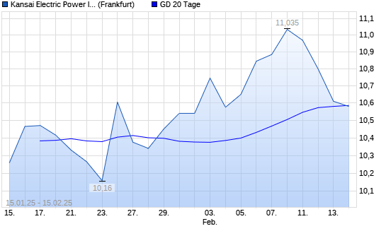 Mit dem Rücksetzer auf 10,58 EUR hat die Kansai Electric-Aktie am 14.02.2025 die 20-Tage-Linie nach unten gekreuzt.