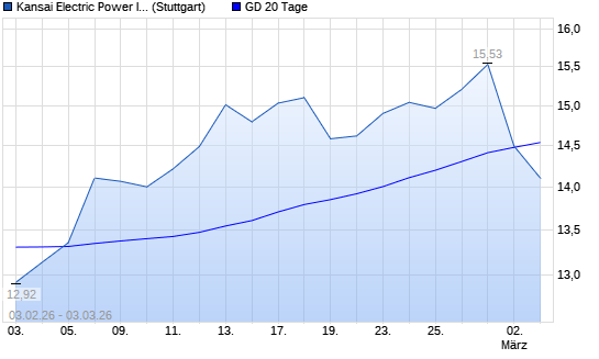 Mit dem Rücksetzer auf 14,32 EUR hat die Kansai Electric-Aktie am 02.03.2026 die 20-Tage-Linie nach unten gekreuzt.