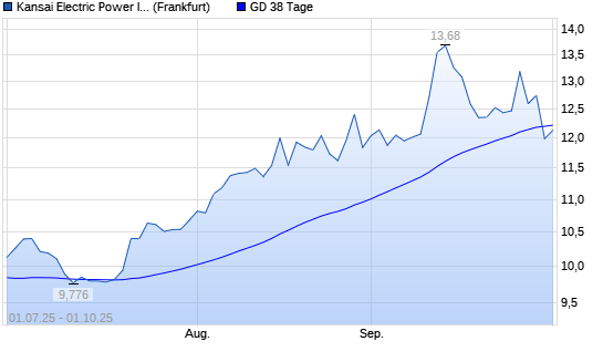 Mit dem Rücksetzer auf 11,99 EUR hat die Kansai Electric-Aktie am 30.09.2025 die 38-Tage-Linie nach unten gekreuzt.