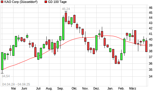 Mit dem Anstieg auf 39,41 EUR hat die Kao-Aktie am 03.04.2025 die 100-Tage-Linie nach oben gekreuzt.