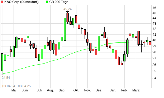 Mit dem Rücksetzer auf 39,00 EUR hat die Kao-Aktie am 02.04.2025 die 200-Tage-Linie nach unten gekreuzt.Die Kao-Aktie befand sich seit dem 25.03.2025 im langfristigen Aufwärtstrend und ...weiterlesen