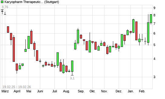Mit dem Anstieg auf 7,45 EUR hat die Karyopharm Therapeutics-Aktie (ISIN US48576U2050) am 18.02.2026 ein neues 6-Monats-Hoch erreicht und damit den Kurs vom 13.02.2026 eingestellt.