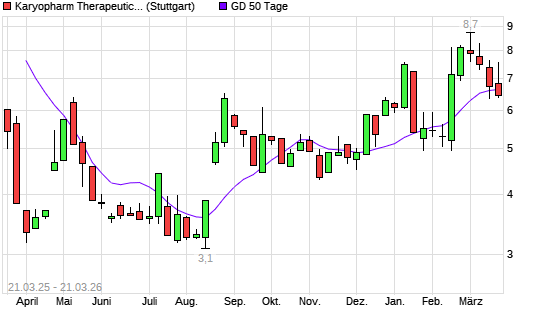 Mit dem Rücksetzer auf 6,20 EUR hat die Karyopharm Therapeutics-Aktie am 20.03.2026 die 50-Tage-Linie nach unten gekreuzt.
