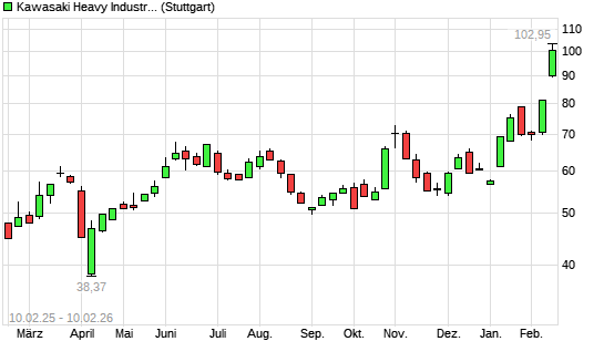 Mit dem Anstieg auf 94,66 EUR hat die Kawasaki Heavy-Aktie (ISIN JP3224200000) am 09.02.2026 ein neues All-Time-High erreicht und damit den Kurs vom 06.02.2026 eingestellt.