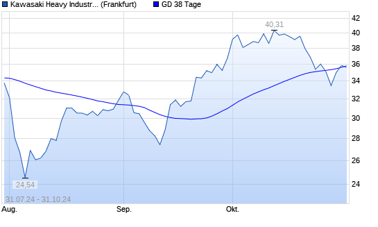 Mit dem Anstieg auf 35,84 EUR hat die Kawasaki Heavy-Aktie am 30.10.2024 die 38-Tage-Linie nach oben gekreuzt.